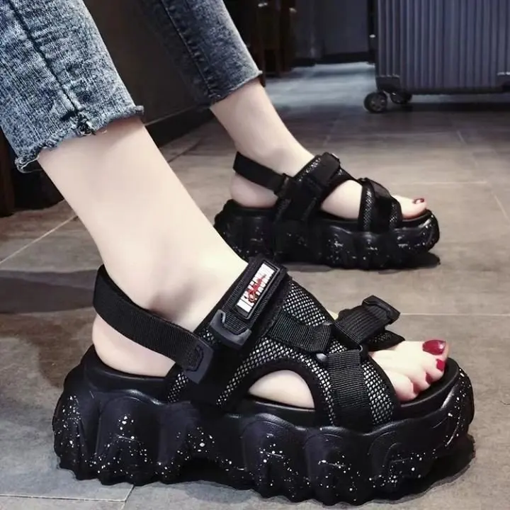 Сандалии Fujin женские на толстой подошве, дышащие босоножки на платформе, повседневная обувь на танкетке, сетчатые, модель 2021