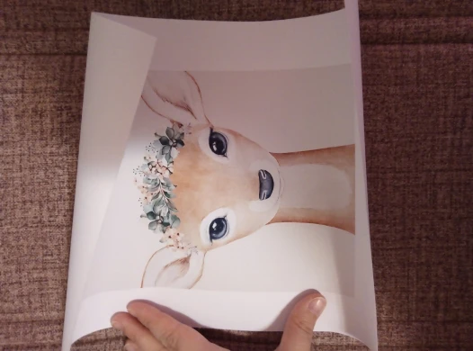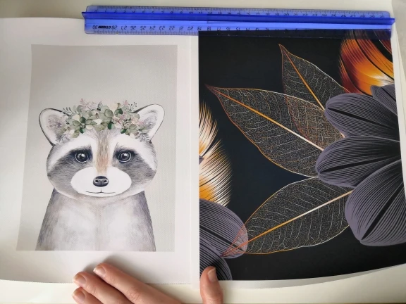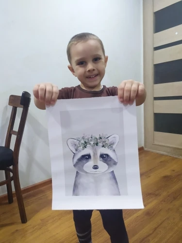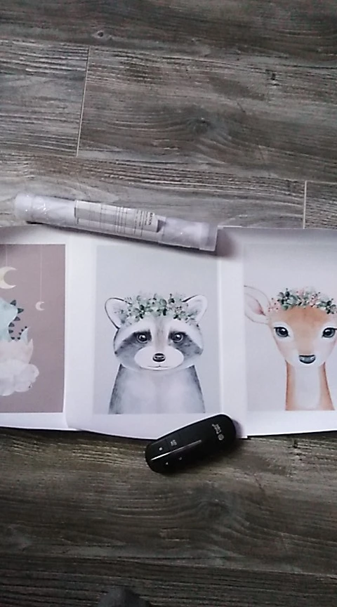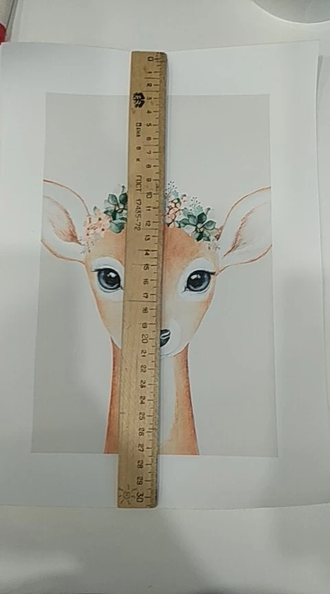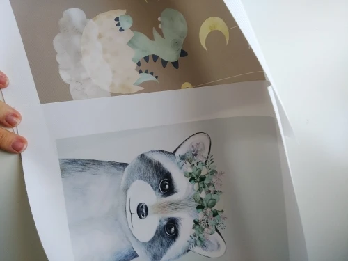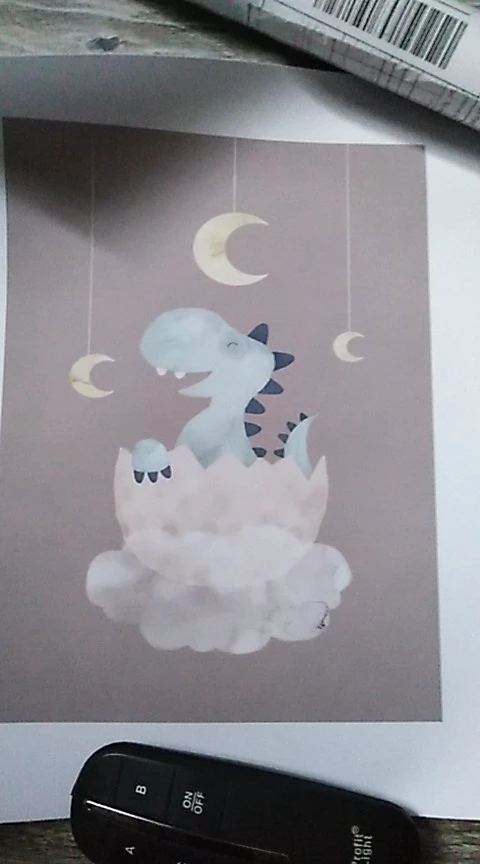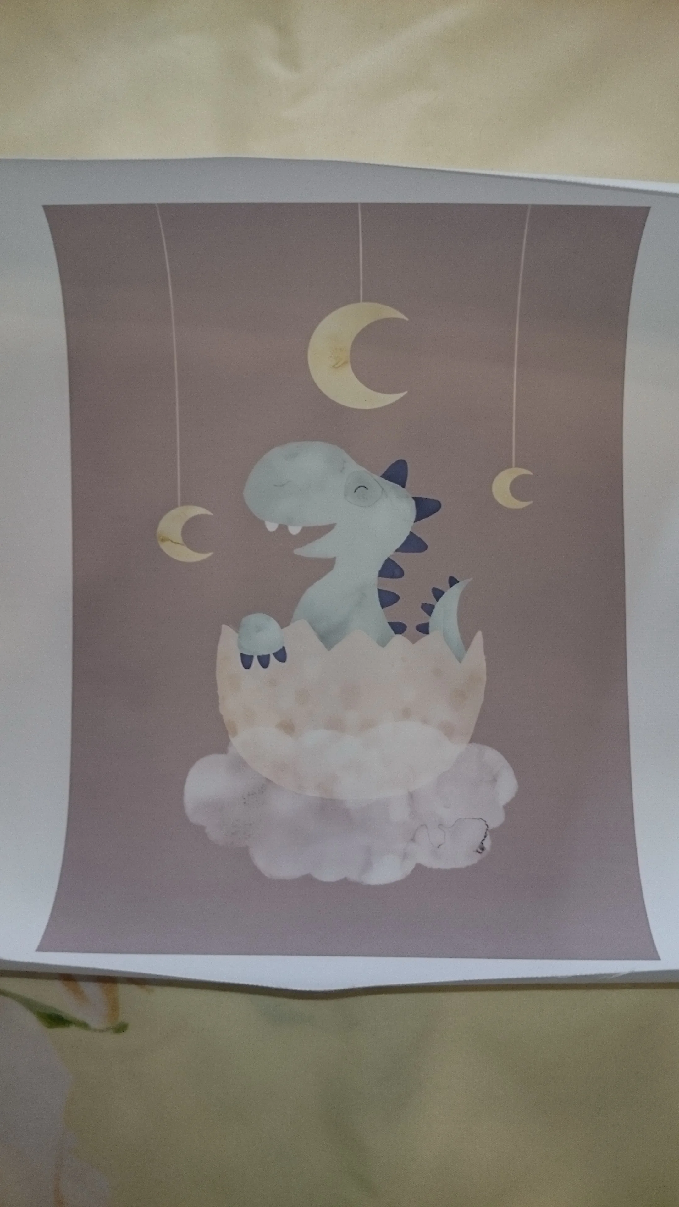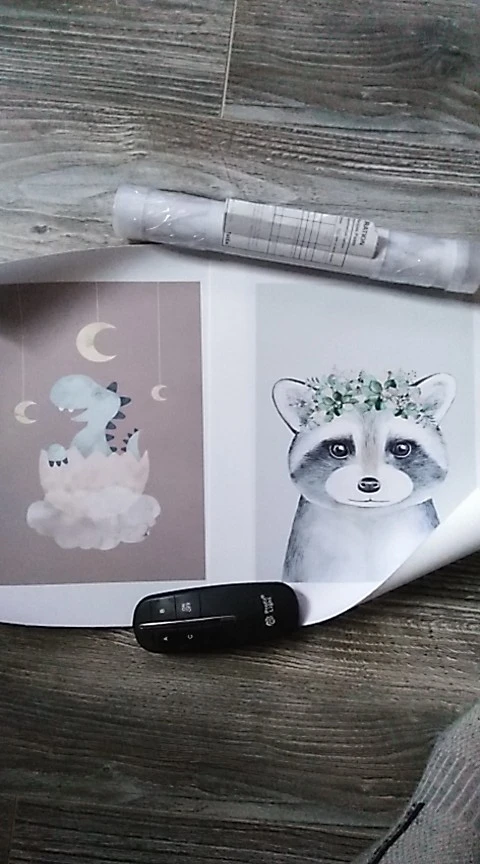 Вышло забавно. Заказывала два постера разными посылками: розовый динозавр и зелёный динозавр. В этом заказе должен был приехать зелёный размером 21*30. Динозавр приехал почему-то с другом-енотом и размером они были поменьше. в ширину те самые 21 см, но с учётом белой кромки, а вот в высоту поменьше, на фото это видно. А вместо розового динозавра приехал оленёнок тоже немного не того формата. Но в сумме я конечно всем довольна. Кстати, постеры ехали в маленьких тубусах.
