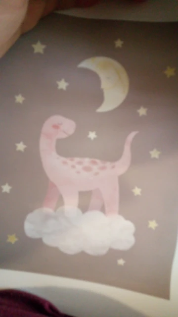 Вместо розового динозавра получила оленёнка. Размер постера интересен, не совсем такой, как заявлен(в высоту немного выше). Но зато во второй посылке мне прислали два постера вместо одного. Таким образом, я не в обиде и не имею претензий к продавцу. Тем более, что качество товара хорошее.