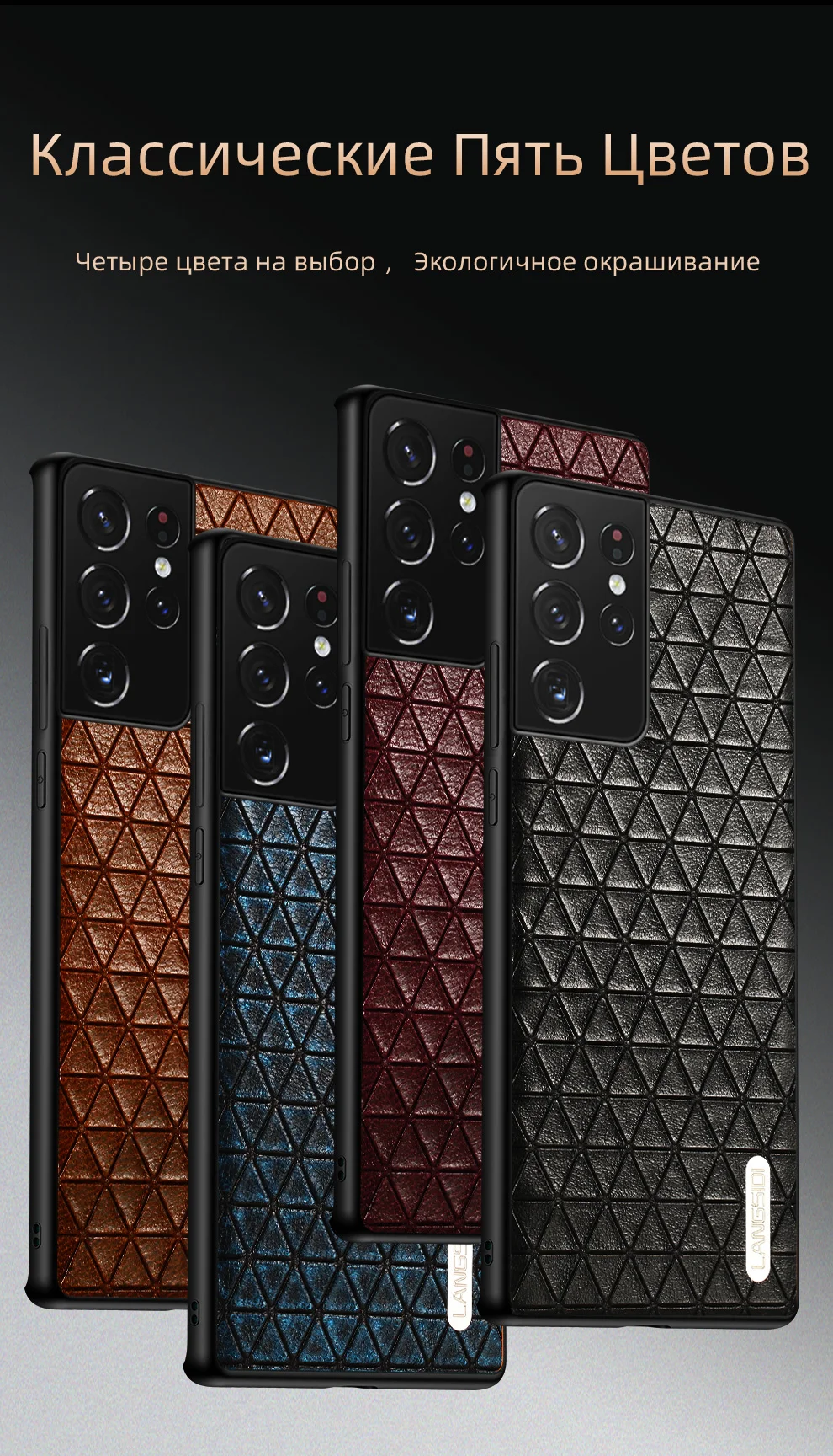 Чехол для Samsung Galaxy S21 Ultra, S20 FE, S8, S9, S10, S21 Plus, Note 20, 10, 9, A51, A71, A31, A50, M31, M51, из натуральной кожи с треугольной текстурой
