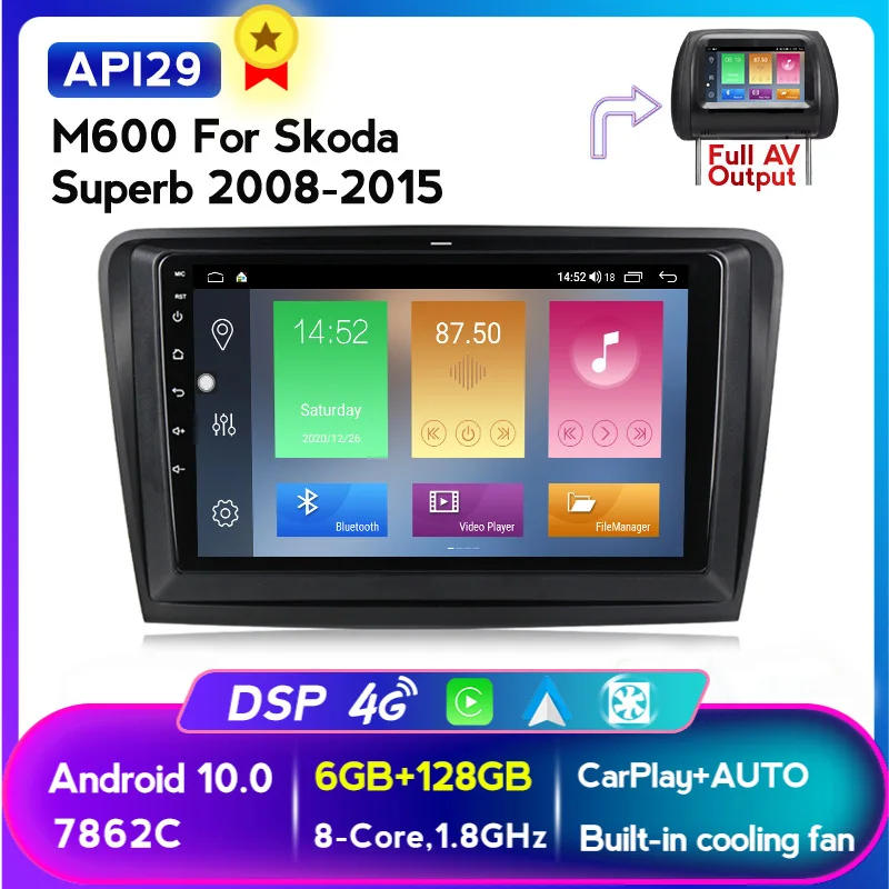 Автомагнитола MEKEDE, 2 din, IPS, HD, 6 ГБ + 128 Гб, Android 10,0, RDS, для Skoda Superb 2 2008-2015, мультимедийный видеоплеер, навигация, GPS