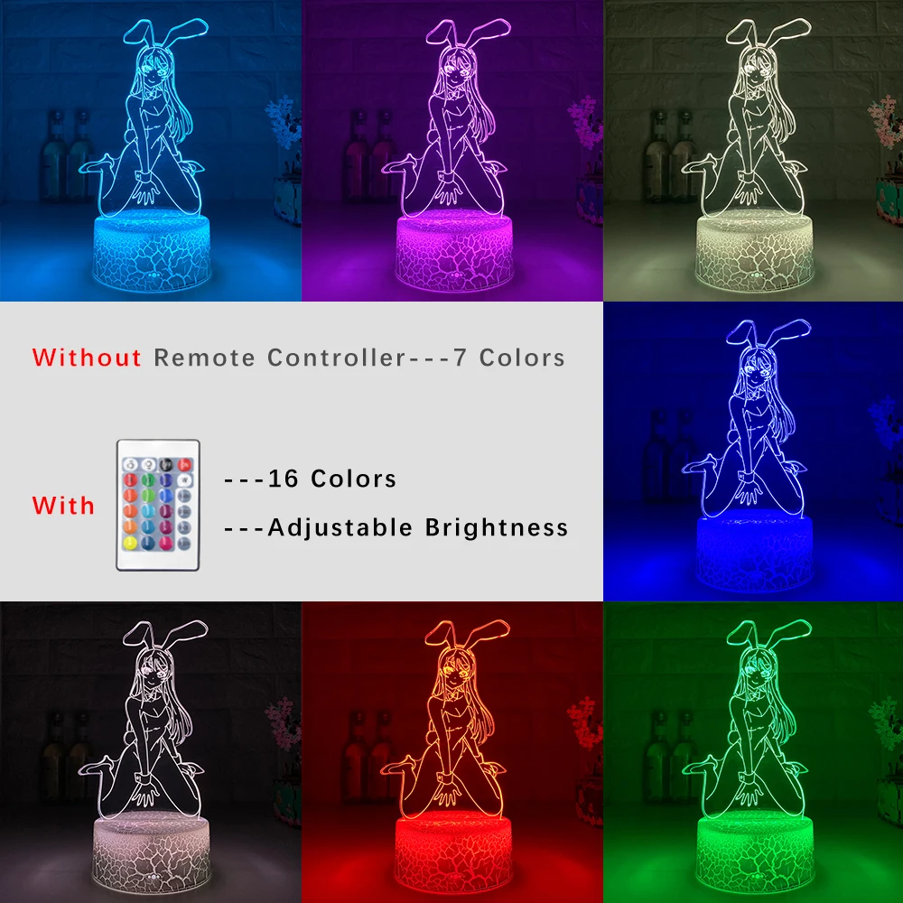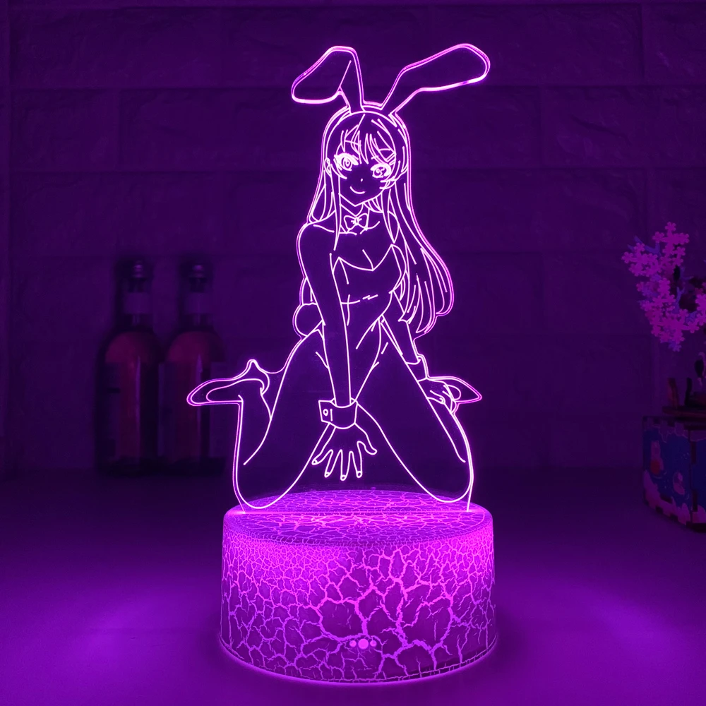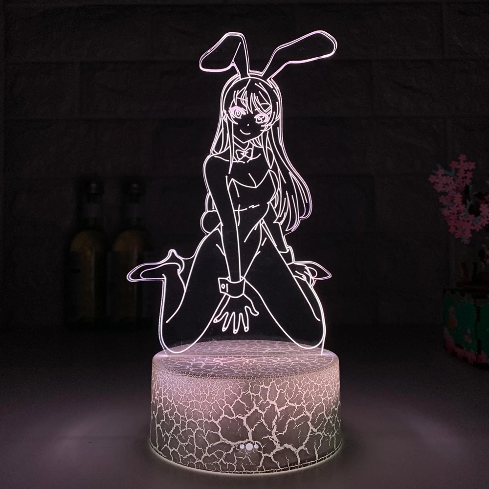 Аниме Waifu Mai Sakurajima светодиодный светильник Декор для спальни манга 3D RGB светильник s подарок для друзей Кролик Девочка декор комнаты Новинка лампа