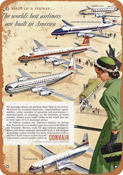 Самолеты Convair, жестяная вывеска, настенное украшение, винтажная алюминиевая вывеска в стиле ретро
