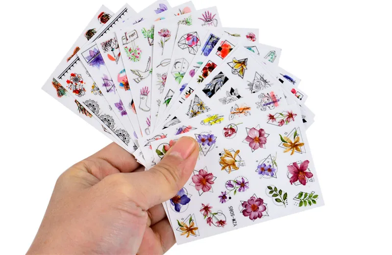 1 лист цветы, геометрическая форма ногтей Водные Наклейки на весну ...
