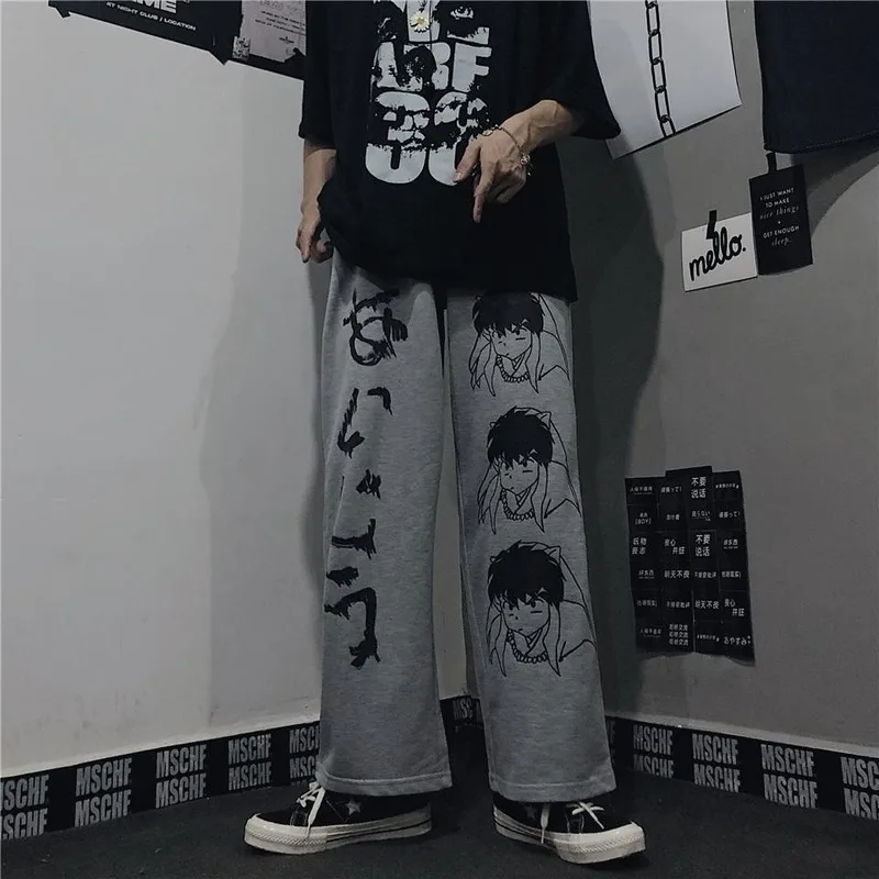 Брюки с широкими штанинами в стиле хип-хоп, с принтом аниме