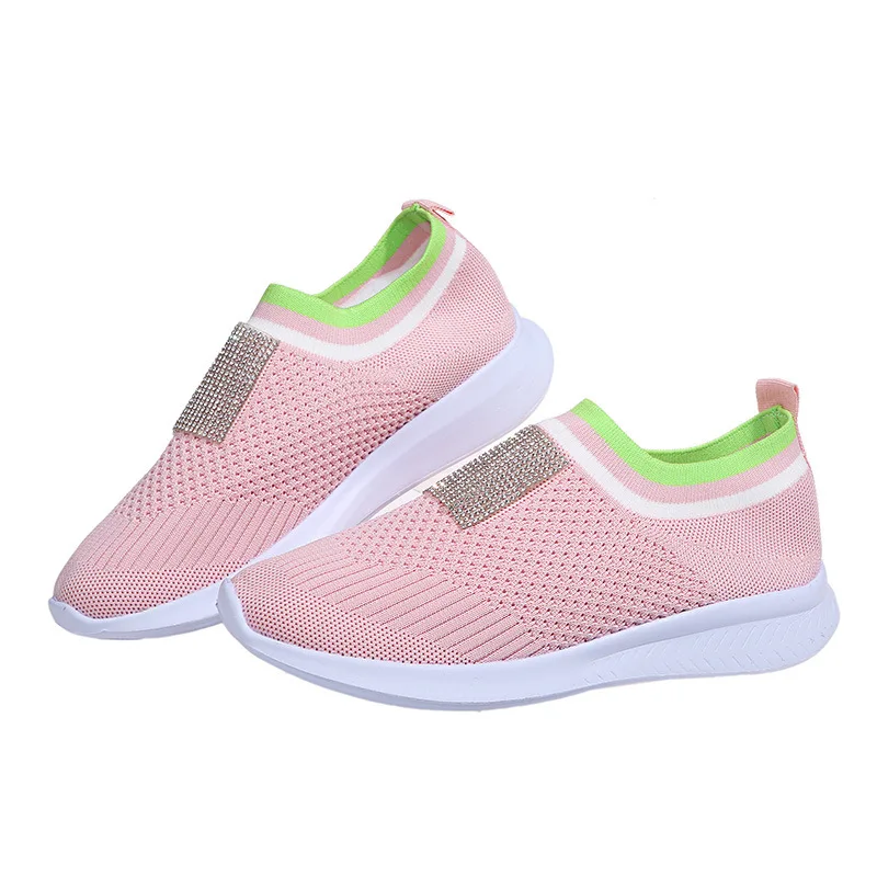 Женская Повседневная обувь; Модные дышащие Прогулочные кроссовки на плоской подошве из сетчатого материала; Коллекция 2021 года; Розовые и черные туфли