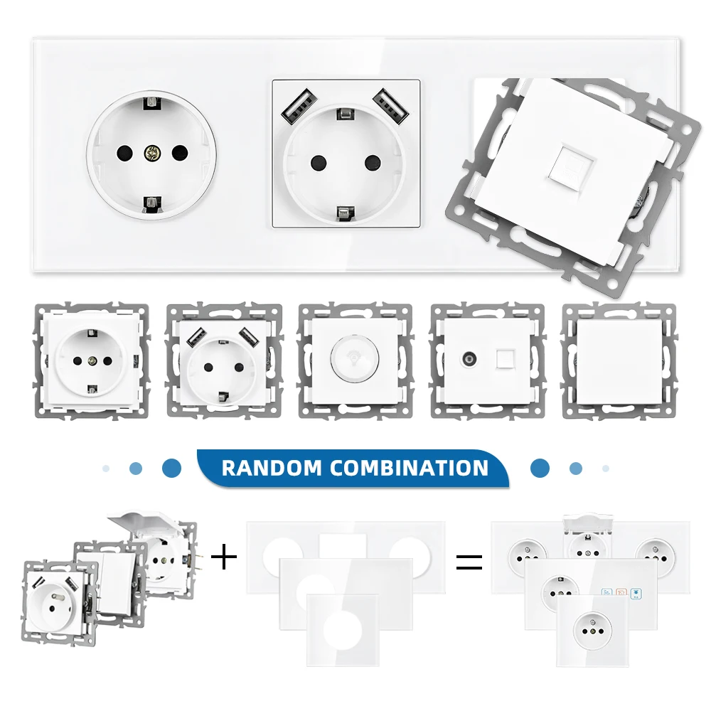 VISWE 2 Рамка, роскошная стеклянная панель с белым жемчугом, стандарт ЕС, двойная стеклянная панель для настенного выключателя и розетки F8P153