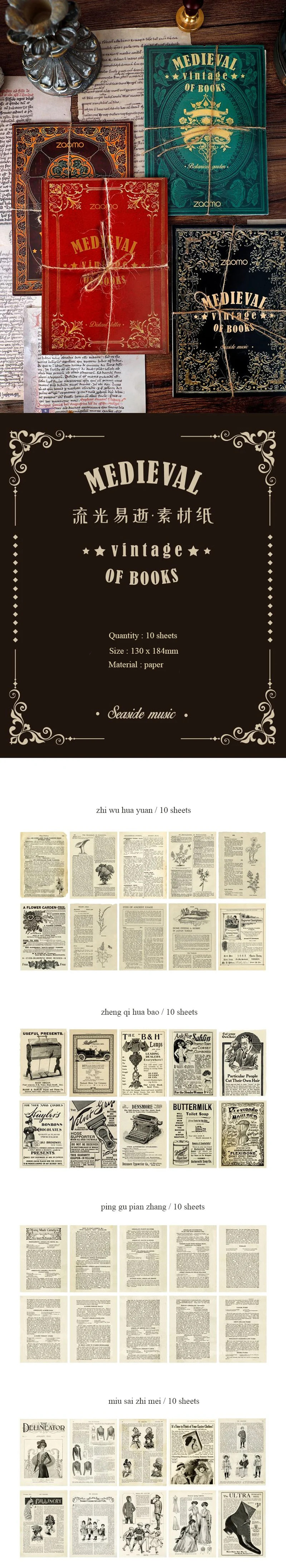 10 листов Ретро средневековый Винтаж из бумаги материал DIY декоративный альбом для вырезок Журнал Планировщик Канцтовары Школьные принадлежности