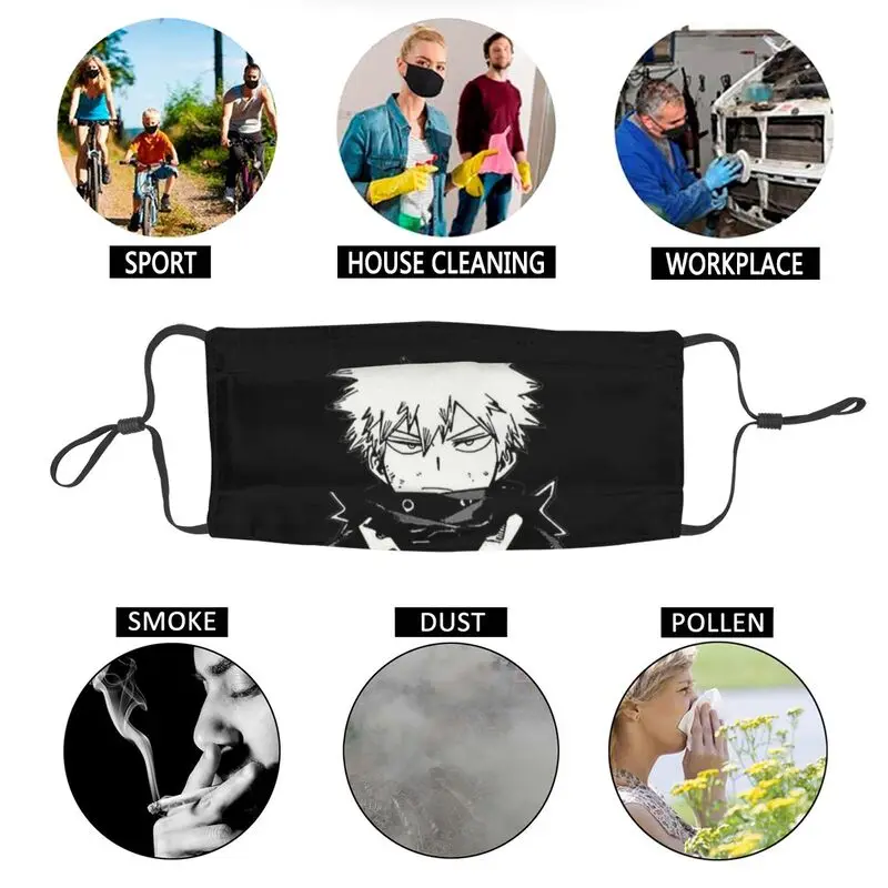 Маска для лица Моя геройская Академия Katsuki Bakugo, моющаяся маска против смога в японском стиле аниме Манга MHA, маска для лица, унисекс, респиратор, маска для рта