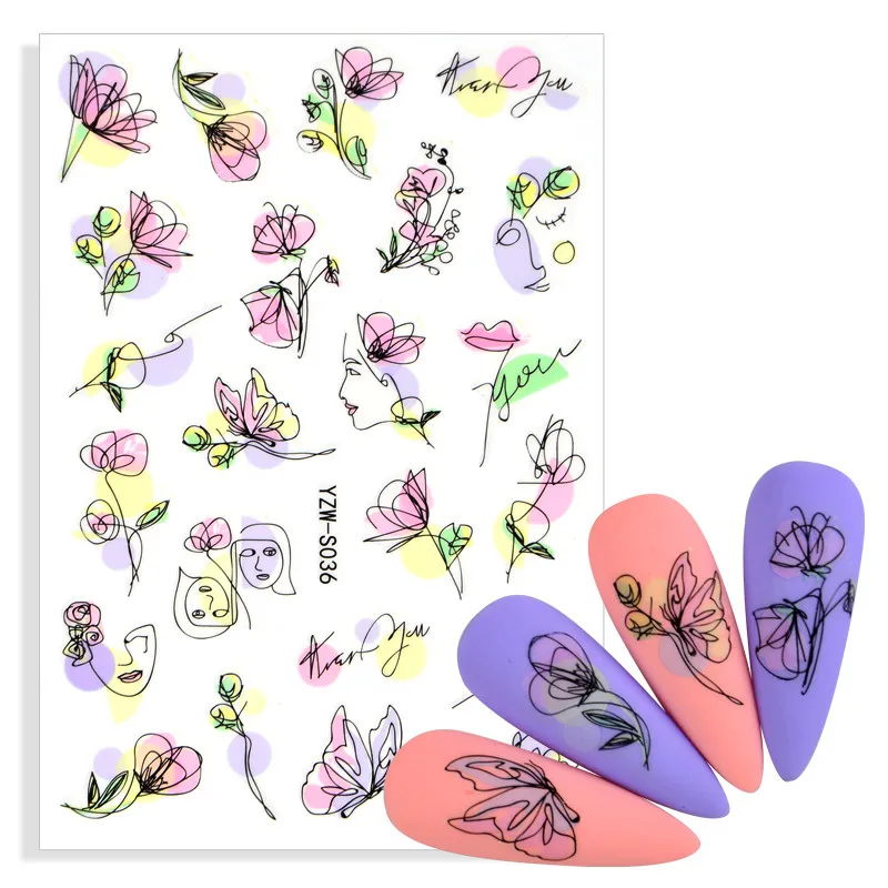 Наклейки для ногтей, абстрактные, цветные, самоклеящиеся, 1 шт.