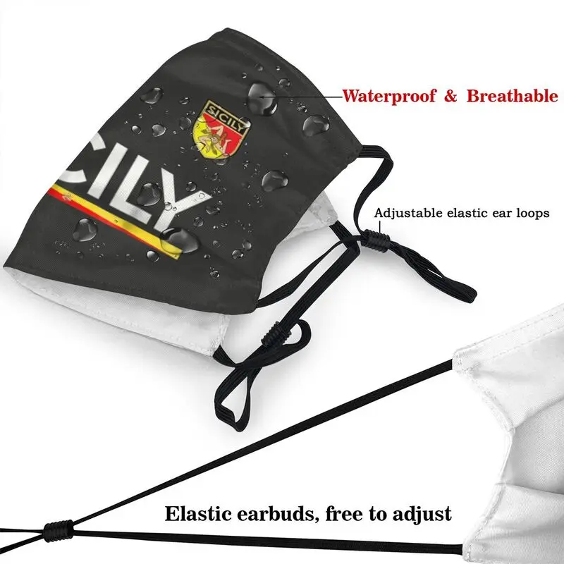 Моющиеся Сицилия футбол Сицилия Италия Футбол Джерси лицевая маска для взрослых унисекс итальянский маска Для мужчин защитный респиратор муфельная печь