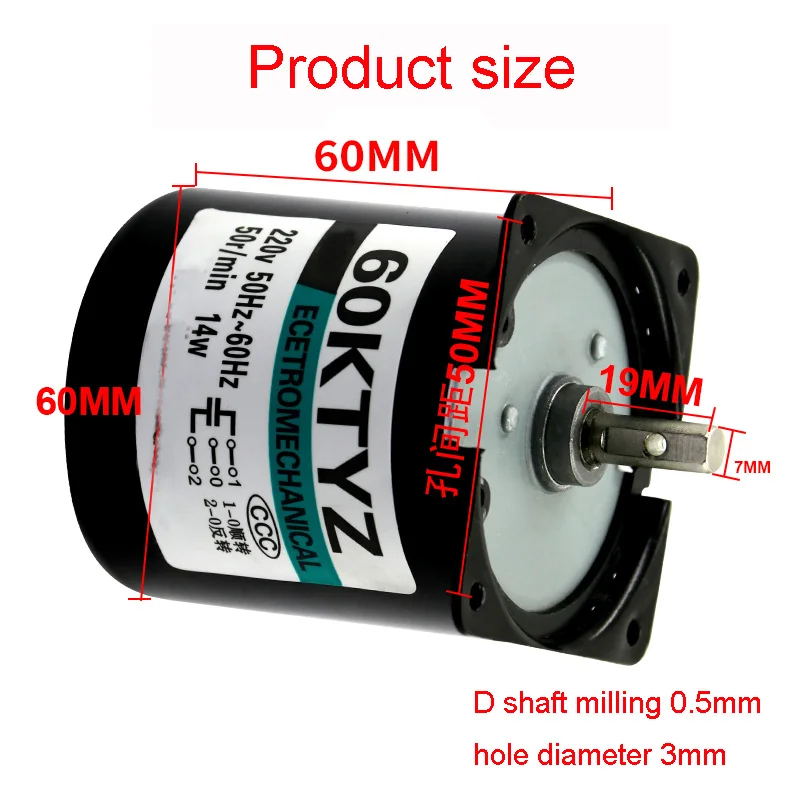 Синхронный мотор с постоянным магнитом 60KTYZ, 220 В перем. Тока, 14 Вт, мотор-редуктор с кронштейном