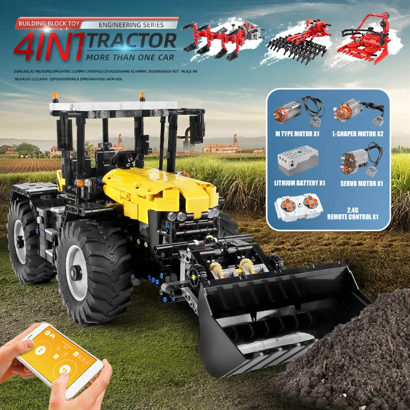 MouldKing 4 в 1, моторизованный трактор для травы, железная техника...