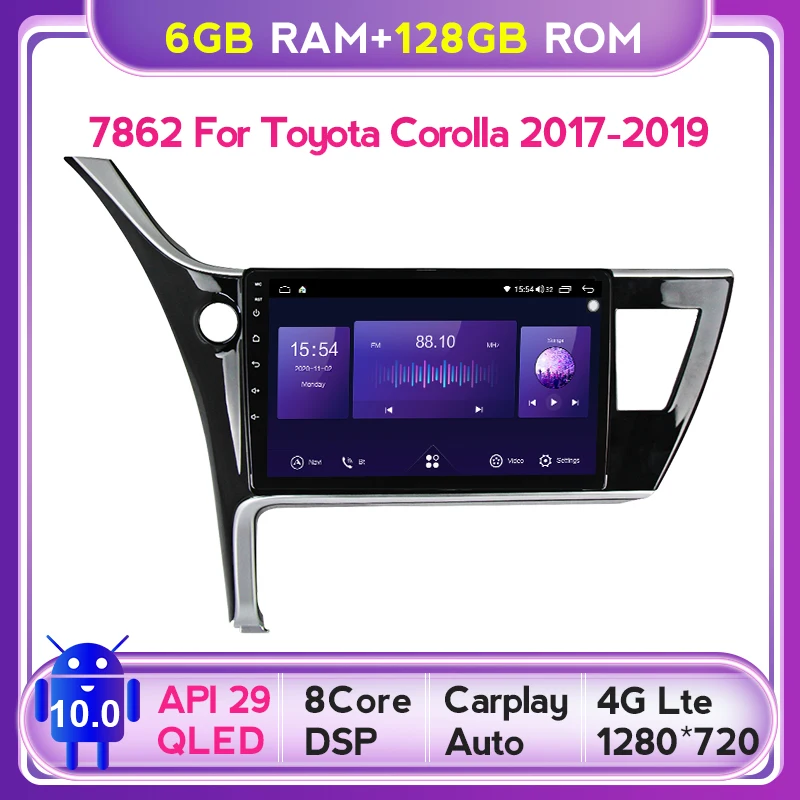 6G + 128G QLED Автомагнитола Android 10 для Toyota Corolla 2017 2018 2019 автомобильный магнитофон Мультимедиа DVD плеер GPS навигация