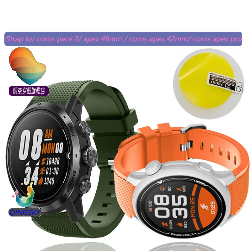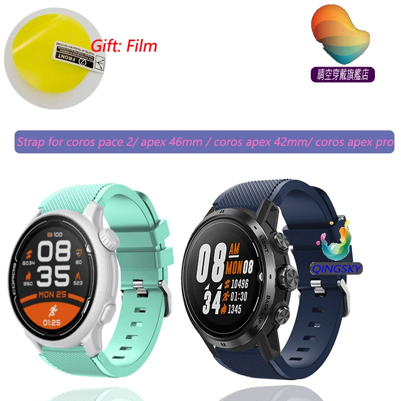 Ремешок для часов Coros Pace 2, силиконовый спортивный браслет для смарт-часов Coros Apex 46 мм42 ммремешок для Coros Apex Pro + пленка для экрана