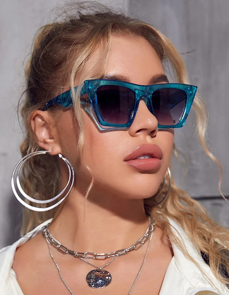 Синий солнцезащитные очки "кошачий глаз", солнцезащитные очки для женщин, Ретро стиль, солнцезащитные очки для мужчин, белые, розовые, защитные стёкла, фирменные дизайнерские модные Цветной линзы модные вечерние