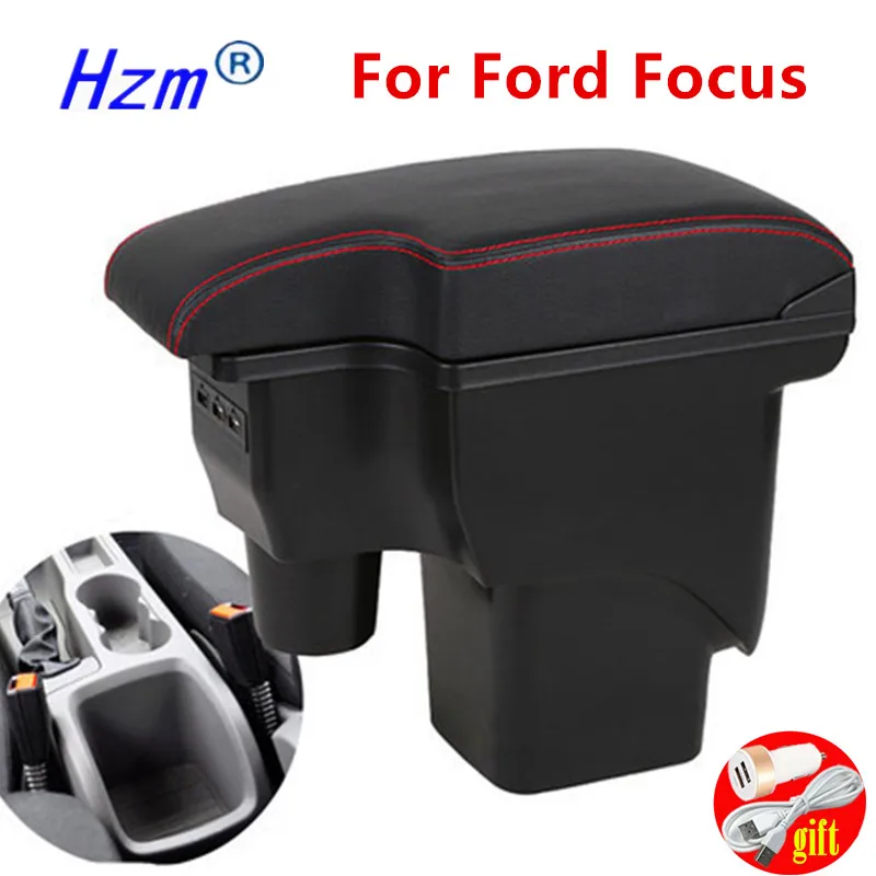 Подлокотник для автомобиля, для Ford Focus 2 Mk2 2005-2011, со светодиодным USB-разъемом