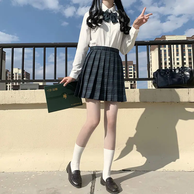 Костюм школьной формы в японском стиле, плиссированная юбка в клетк...