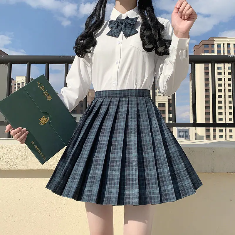 Юбки в Японскую школьную клетку, с высокой талией и коротким рукавом