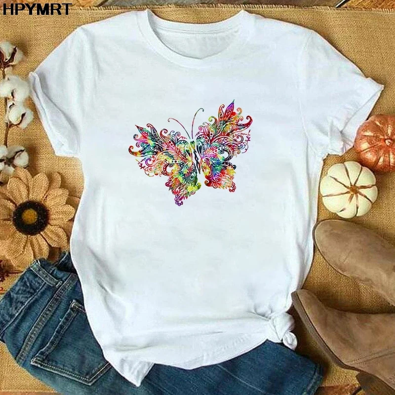 Женская футболка с принтом бабочки, топы, футболки с коротким рукав...