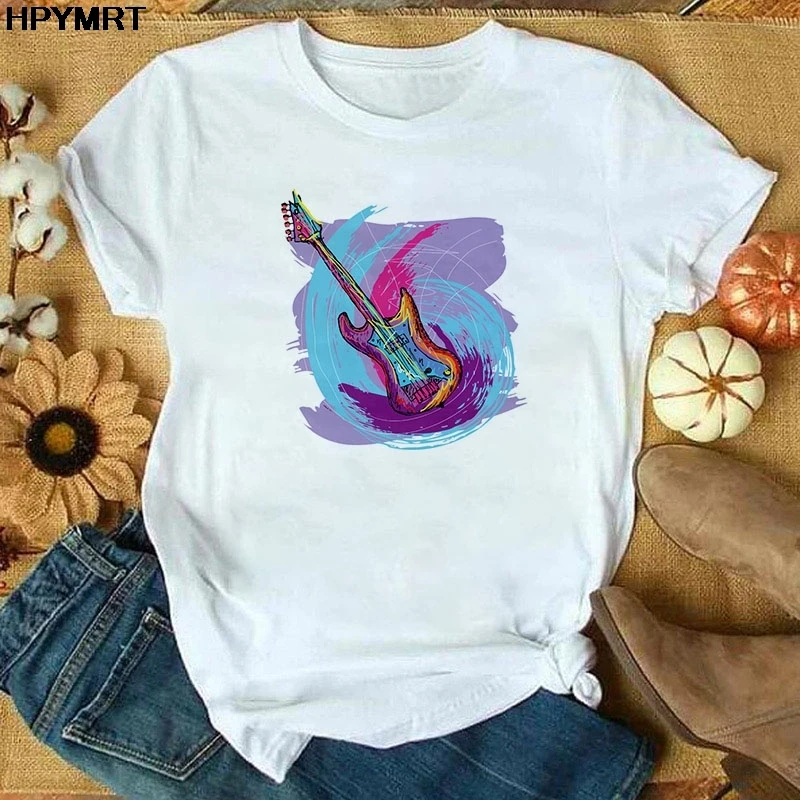 Красивая Белая футболка с принтом гитары, новые летние футболки Har...