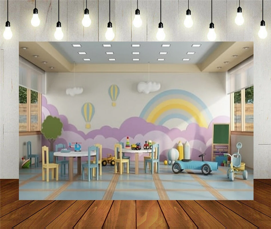 Реквизит для фотостудии Фотография фон красочный детский сад класс Дети школьный стол стул игрушка и украшение Виниловый фон