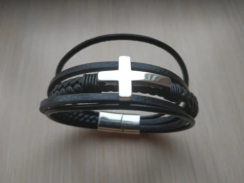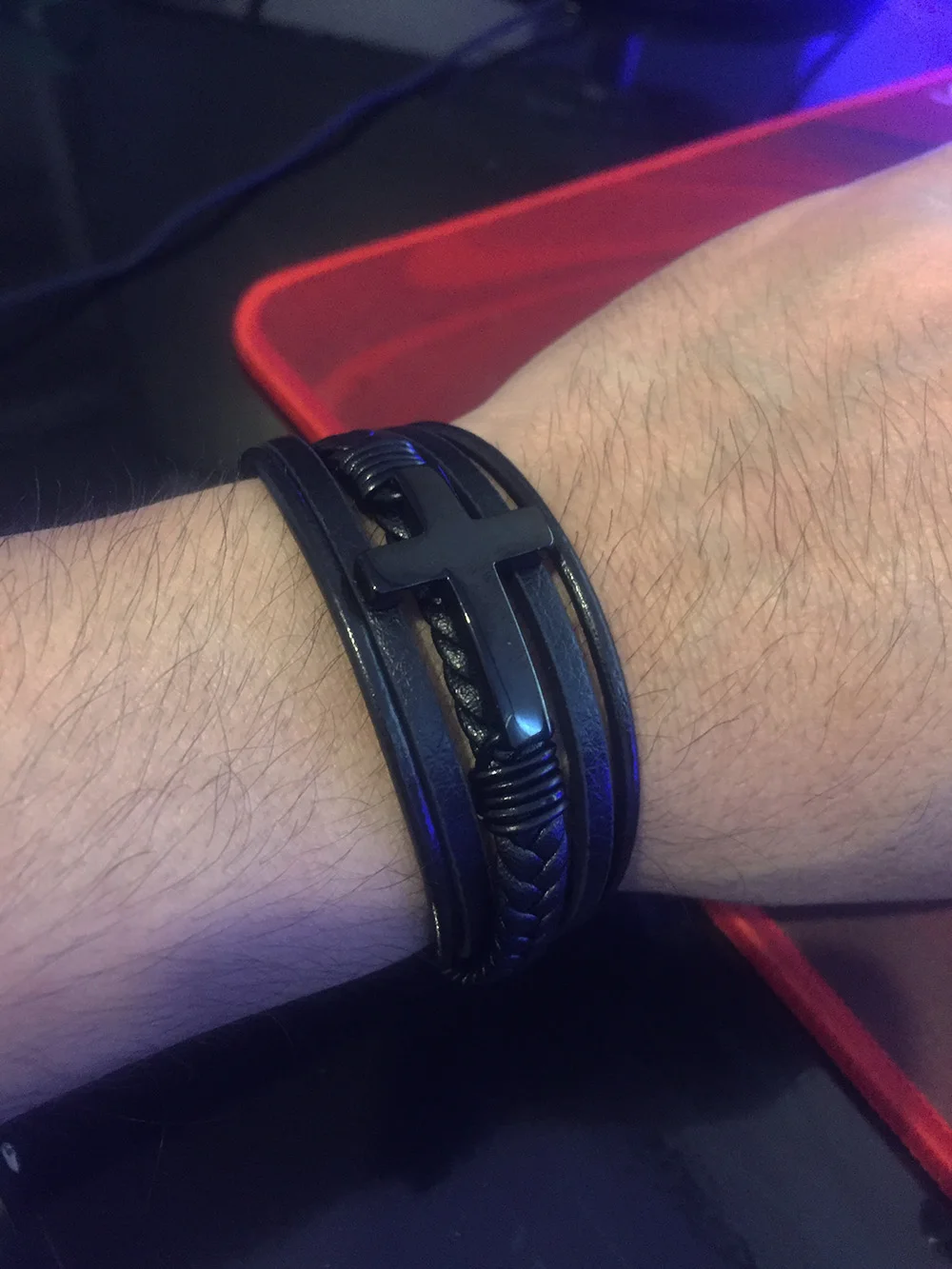 Мужской кожаный браслет, из нержавеющей стали, 192123 см