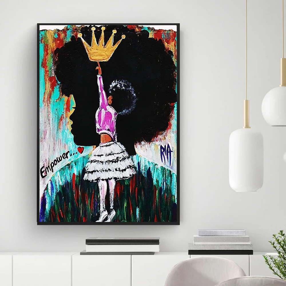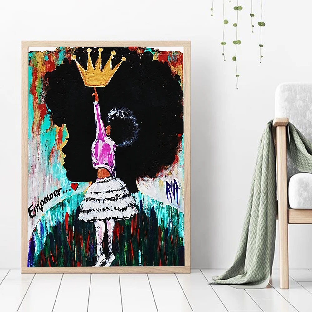 Плакат Феминистская девушка энергия художественные принты черная девушка с золотой короной Современная Настенная Картина на холсте женщина декор комнаты девушки подарки