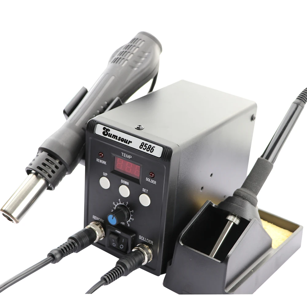 Паяльная станция 8586, сварочный Термофен + Электрический паяльник 2 в 1, ЖК-цифровой дисплей, сварочное оборудование, инструмент для ремонта