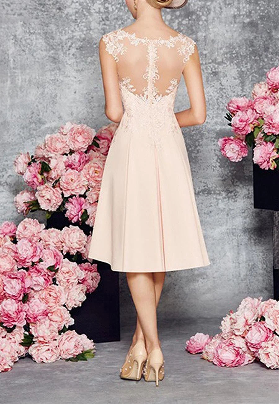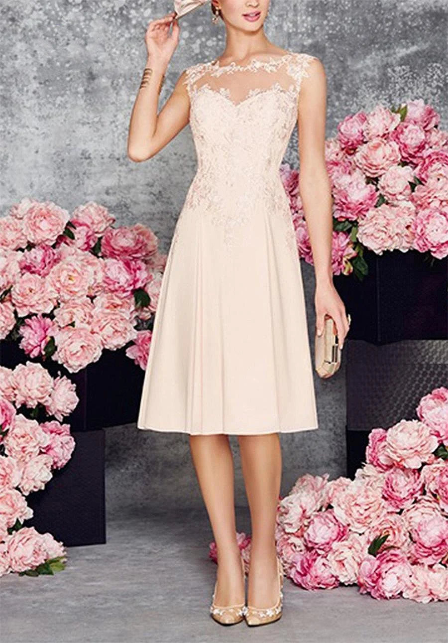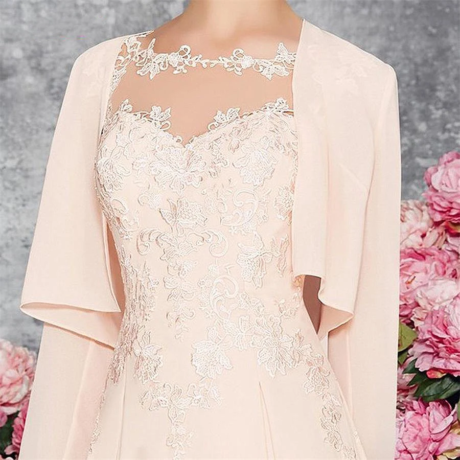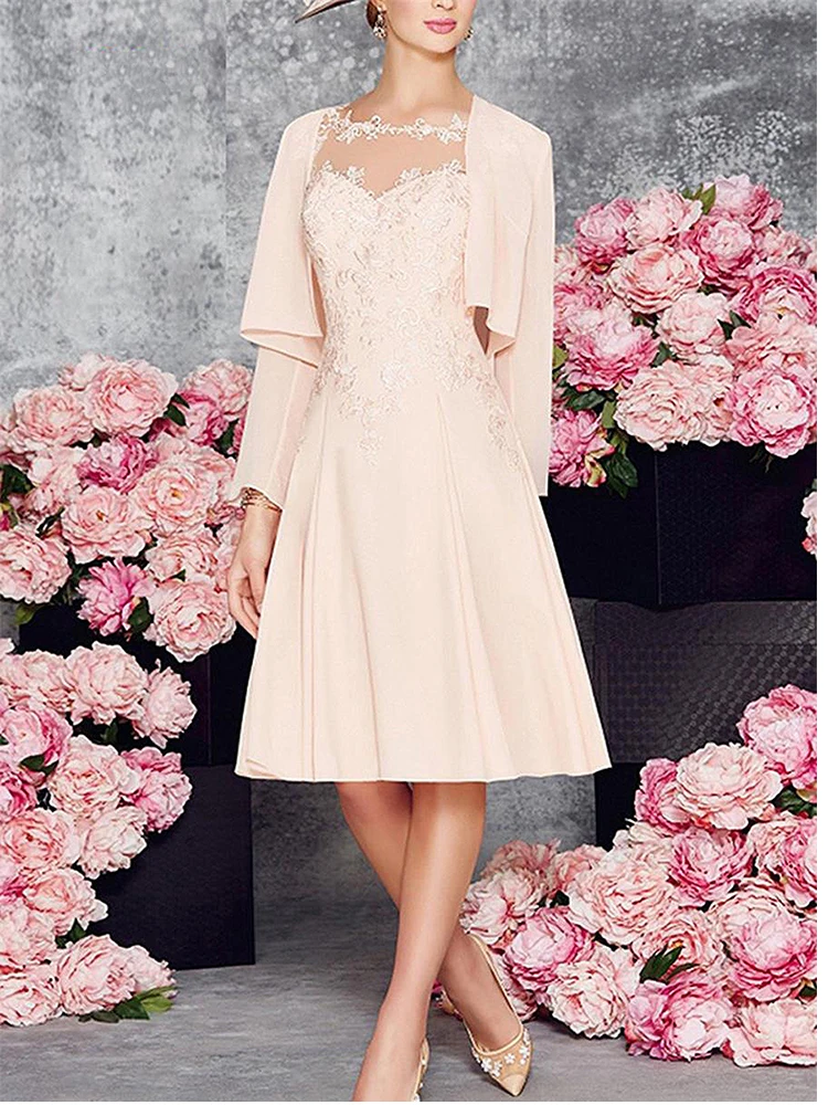 Шифоновое платье для матери невесты 2 предмета, пиджак, длина до колена, кружевное вечернее платье для жениха, свадьбы, церемонии, выпускного вечера, розовый цвет