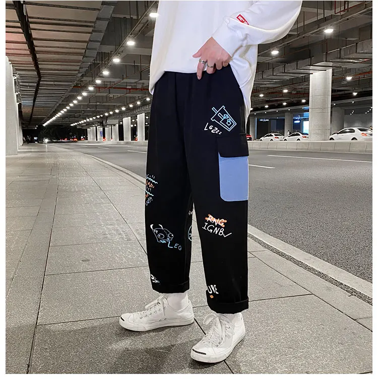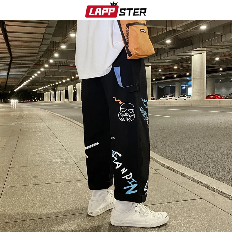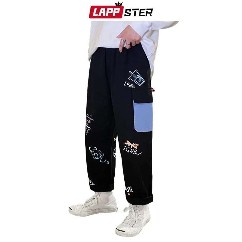 Мужские черные шаровары LAPPSTER в стиле пэчворк 2022 мужские корейские модные мешковатые брюки Джоггеры мужские корейские модные повседневные спортивные брюки 5XL