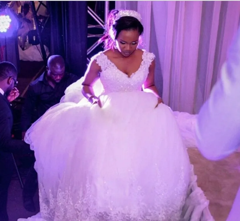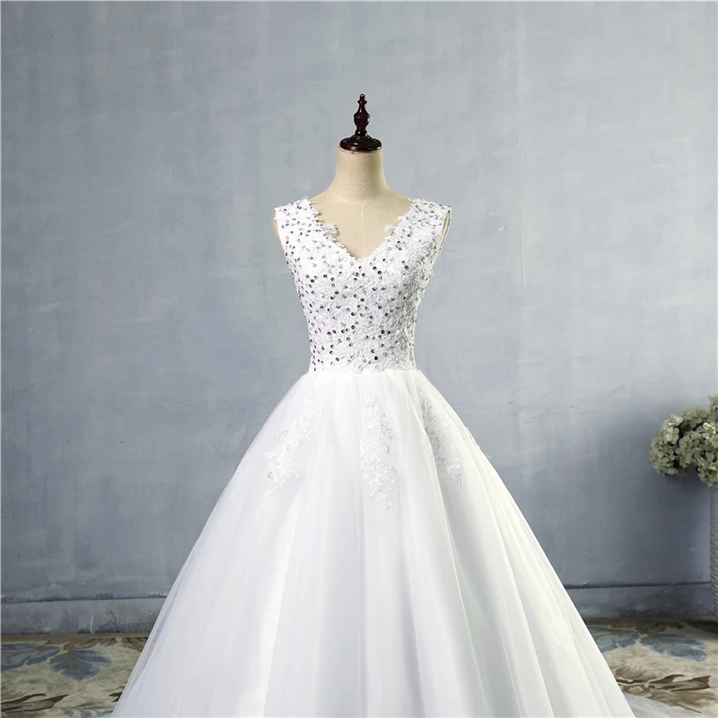 Белое Бальное Платье ZJ9064, свадебные платья 2020 с рукавами-крылышками и бисером, великолепные кружевные свадебные платья с V-образным вырезом и Королевским шлейфом