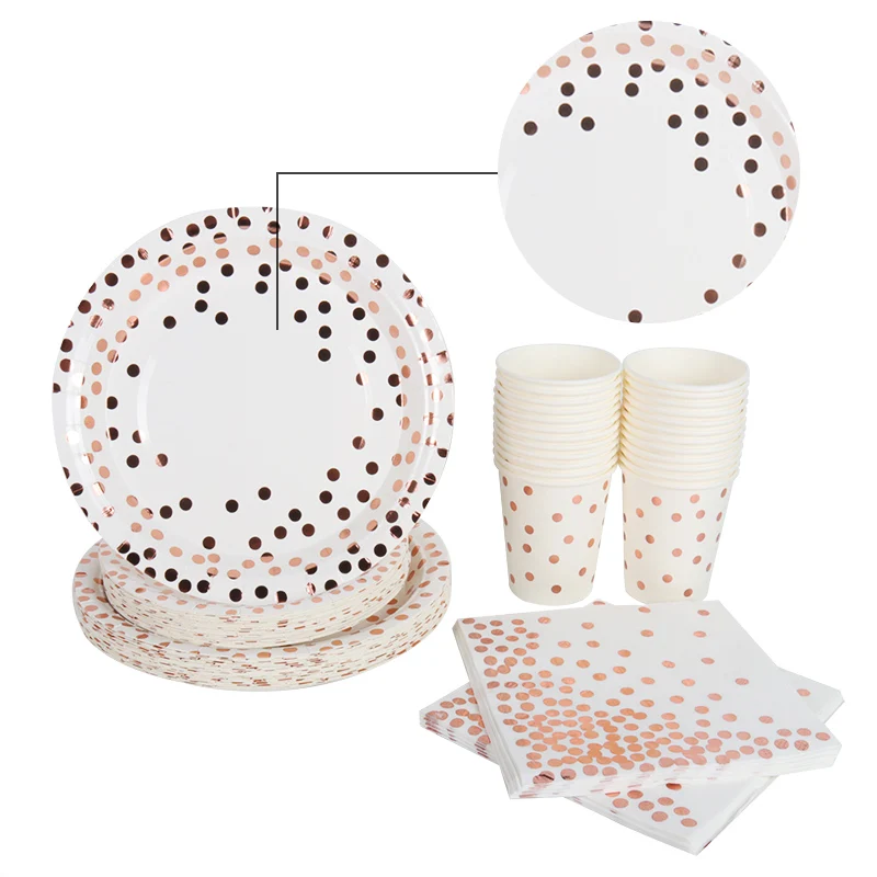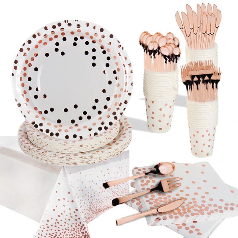 Одноразовая посуда для вечерние, бумажный набор из розового золота,...