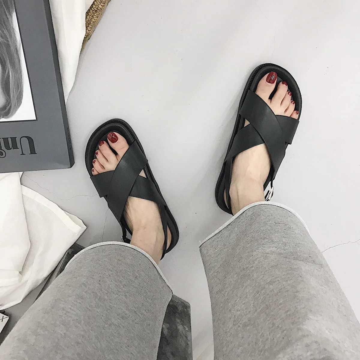 Отсутсвует застёжка на правой ноге(но это не проблема ,можно сделать) ,так в целом сандали красивые ,удобные ,маломерки на 1 размер ,быстрая доставка так что смело заказывайте .