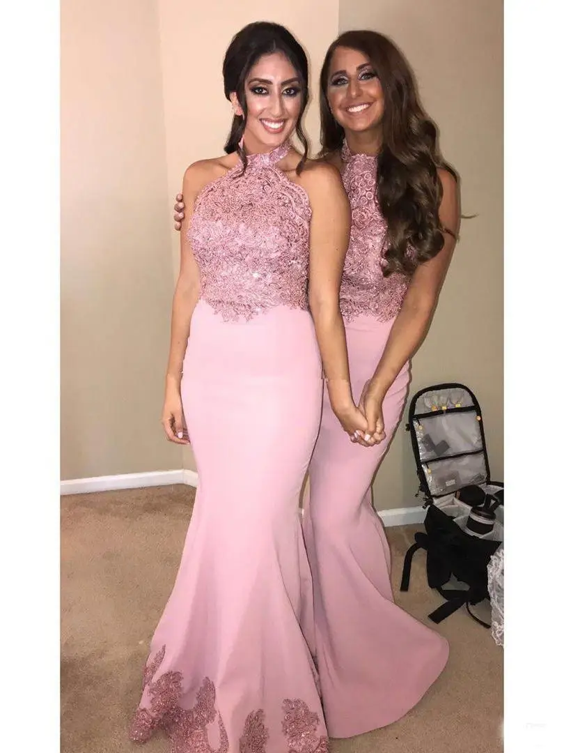 Щедрый Розовый Детское платье силуэта русалка платья подружки невесты на бретельках с круглым вырезом, расшитое бисером, свадебное платье подружки невесты robe mariage femme 2021