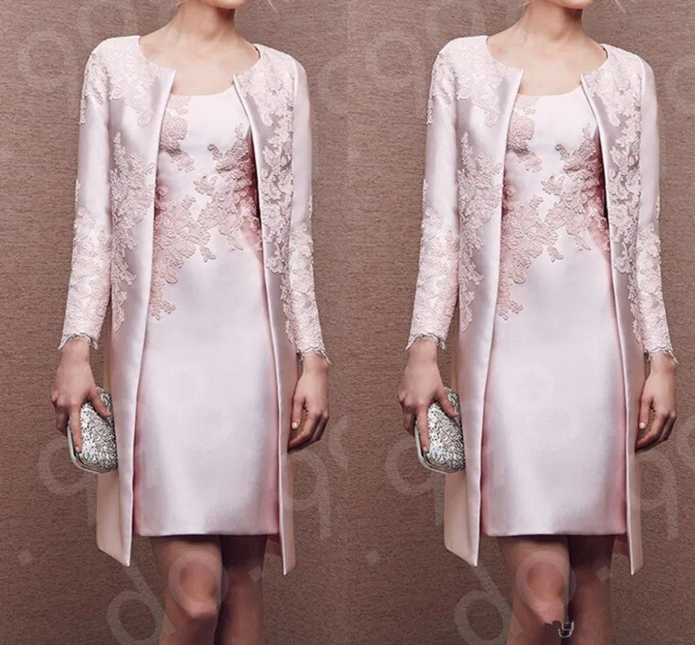 Платья для матери невесты, кружевное розовое официальное платье выше колена, 2021, пиджак с длинным рукавом, для гостей на свадьбу, платья наряды