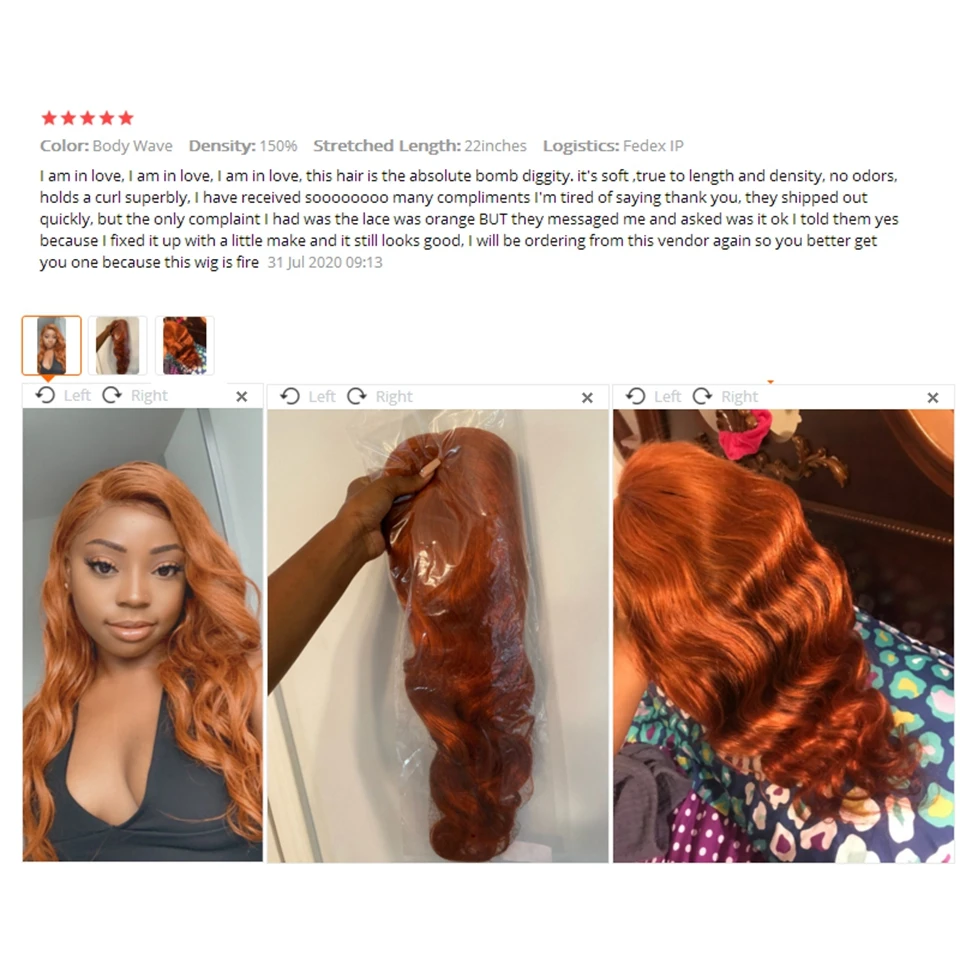 Парики из оранжевого имбиря на фронте, предварительно выщипанные бразильские волнистые человеческие волосы, парики без клея, 180% плотность, Remy, кружевные передние парики