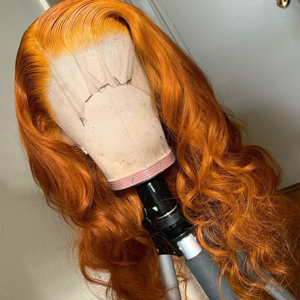 Парики на сетке спереди оранжевого имбиря, предварительно выщипанные бразильские волнистые человеческие волосы, парики без клея, плотность 180%, парики на сетке спереди