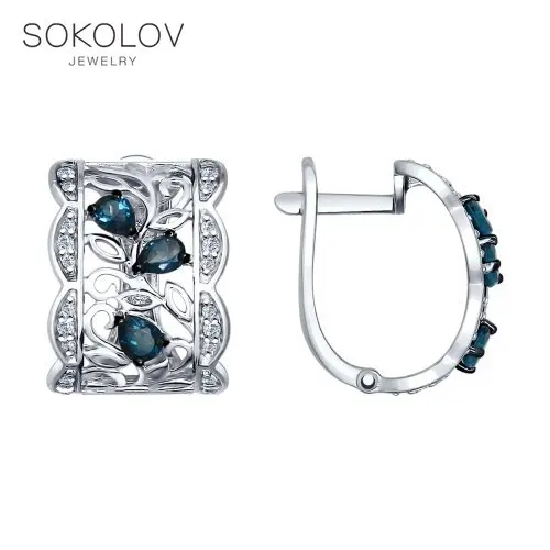 Серьги SOKOLOV из серебра с топазами и фианитами, Серебро, 925, Женские, Серьги 2022 тренд, Оригинальная продукция