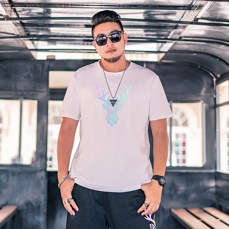 GXXH летний лося Светоотражающие футболки Для мужчин негабаритных 5XL 6XL 7XL прилив бренд футболки высокого качества больших размеров Для мужчин с коротким рукавом для мальчиков, топы