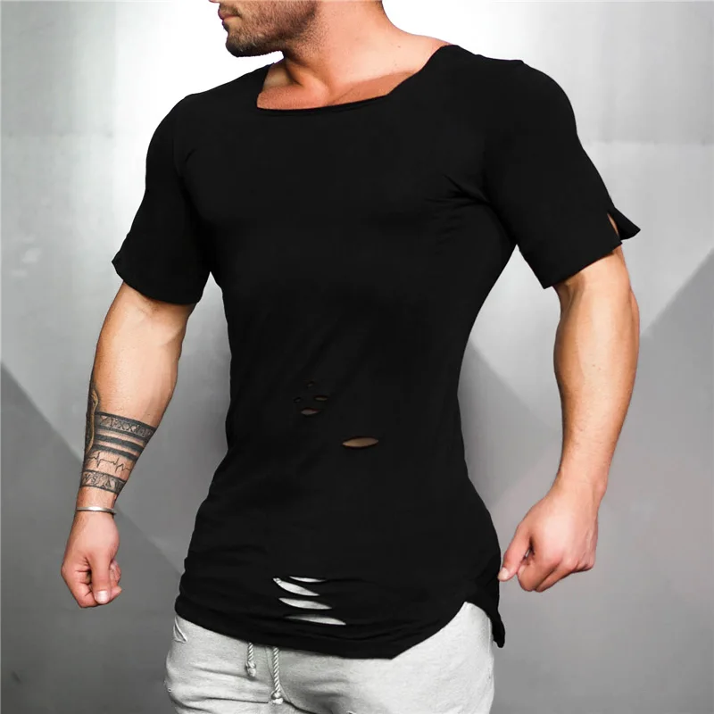 Новая брендовая одежда, летняя модная футболка для мужчин, рваные ф...