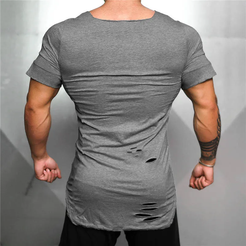 Мужская футболка с дырками Muscleguys, облегающая футболка с квадра...