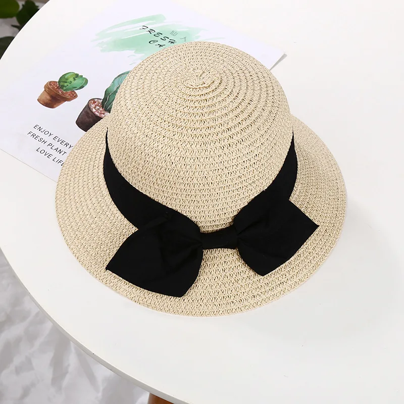 Шляпа соломенная с узлом-бабочкой для девочек, детская пляжная Панама от солнца, с полями и широкими полями, шляпы Fedora, лето