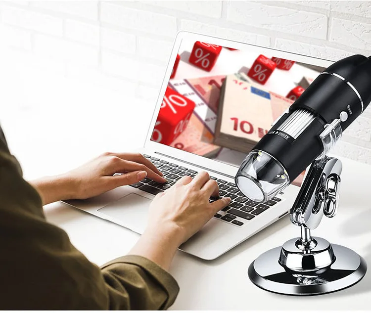 Цифровой USB микроскоп, электронный эндоскоп с 8 светодиодами и подставкой, увеличение 1600 крат