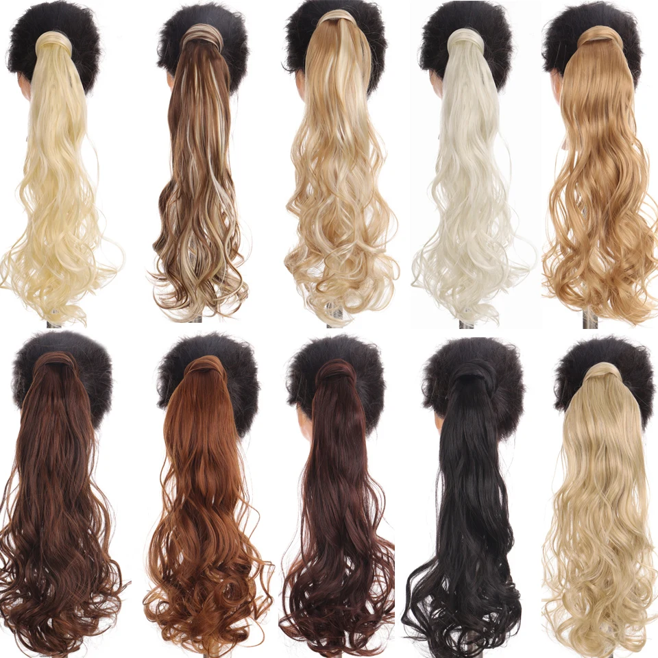 Женский синтетический накладной хвост, длинные волнистые кудрявые волосы, пушистый конский хвост