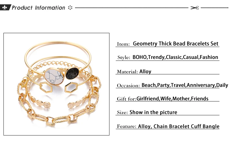 Набор браслетов для женщин VKME из металла и золота, 4 шт.