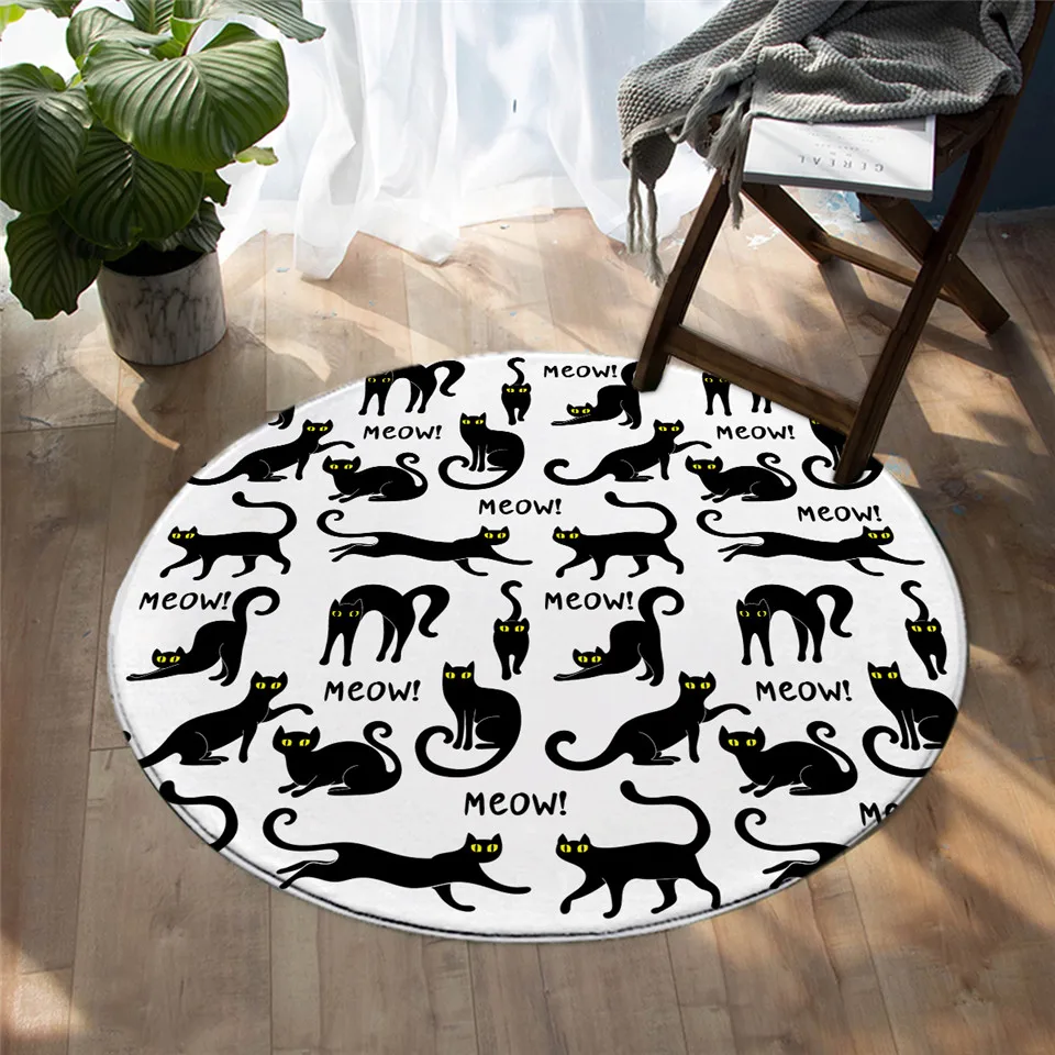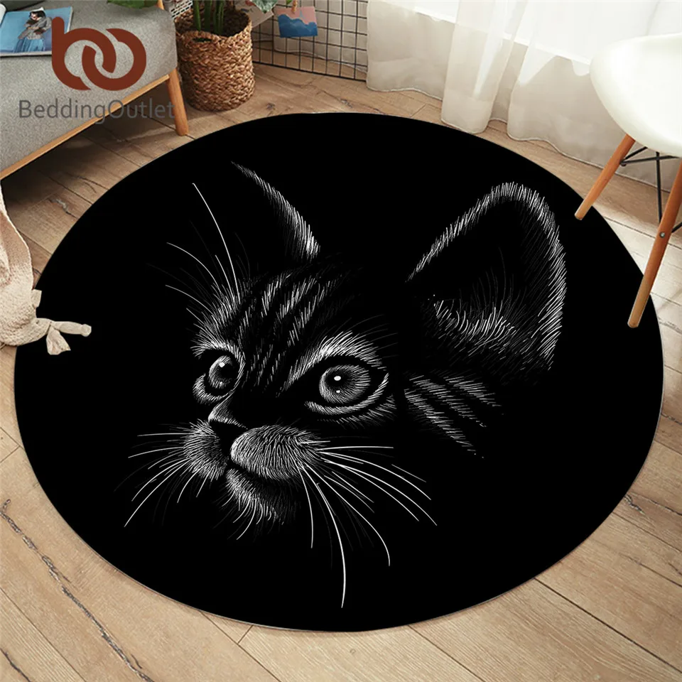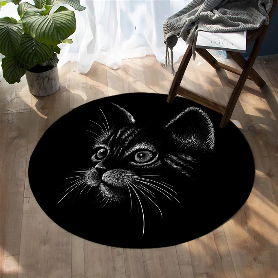 Круглый коврик BeddingOutlet для спальни с изображением белого кота, коврик черного цвета см, для гостиной
