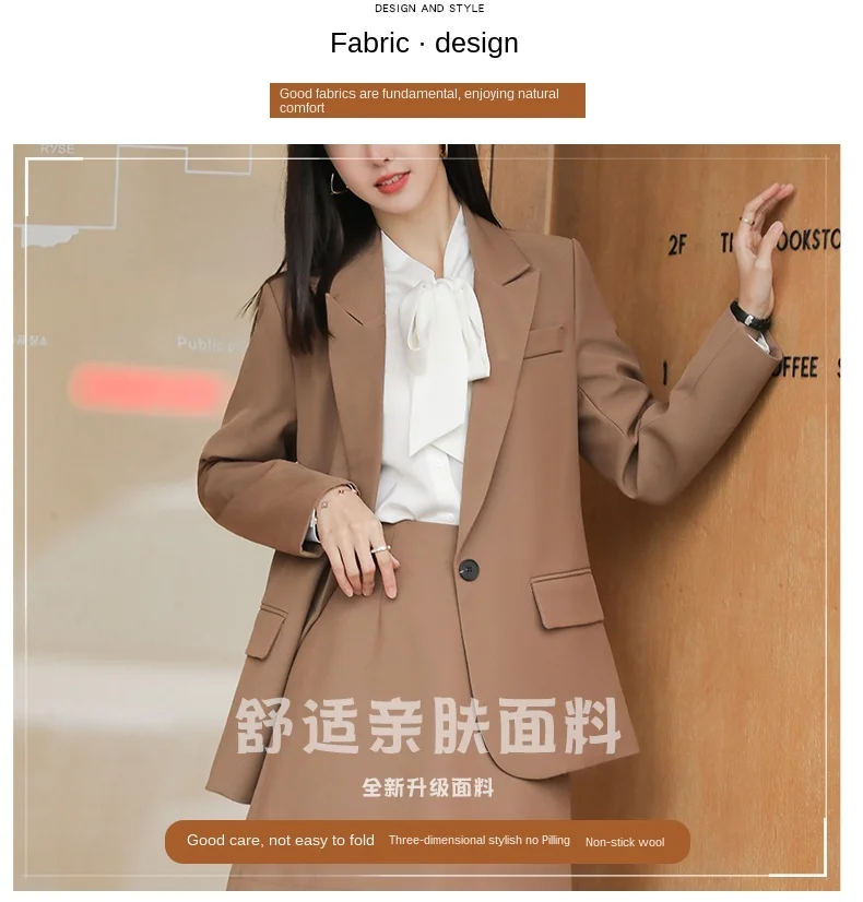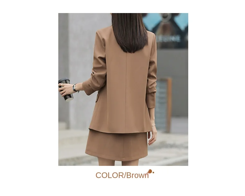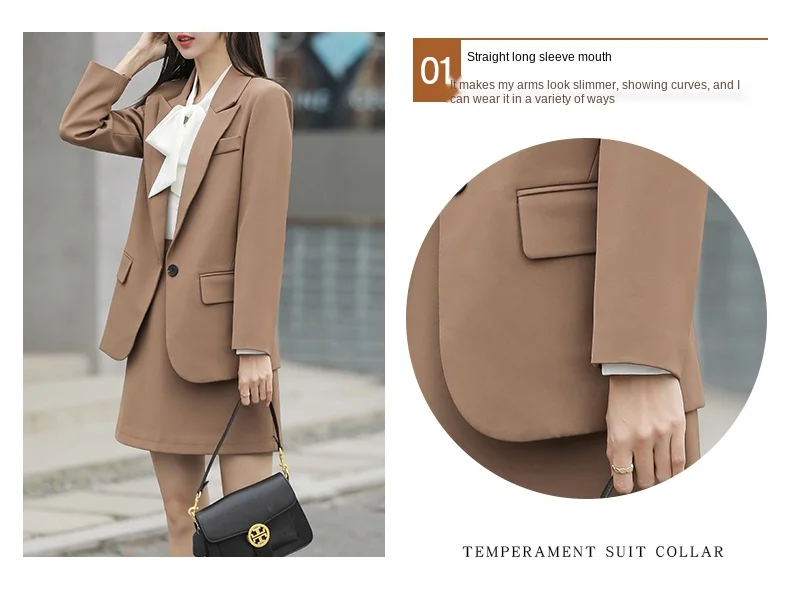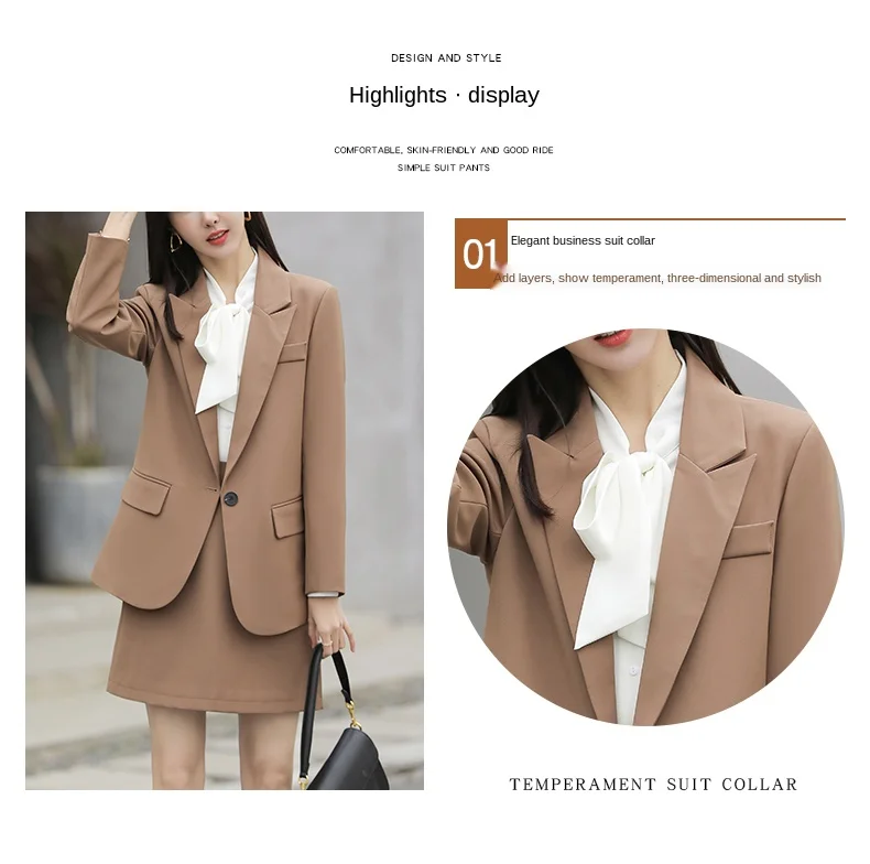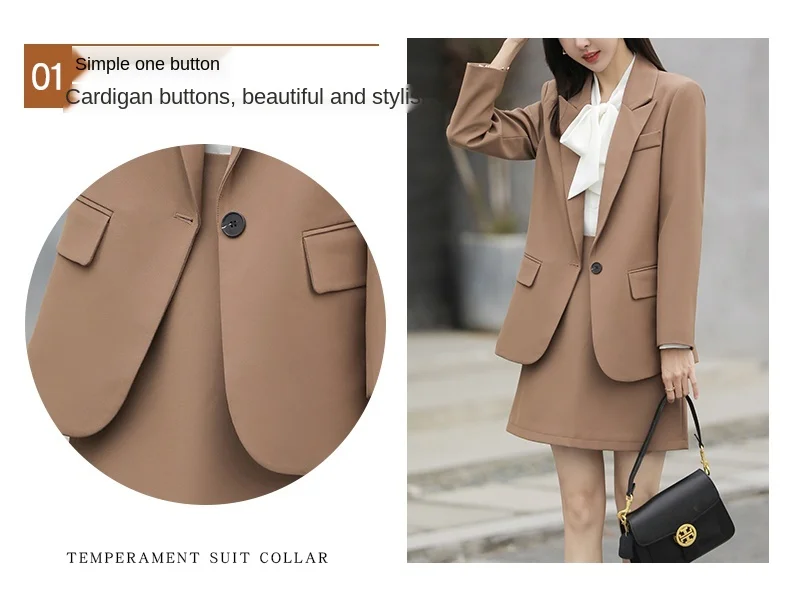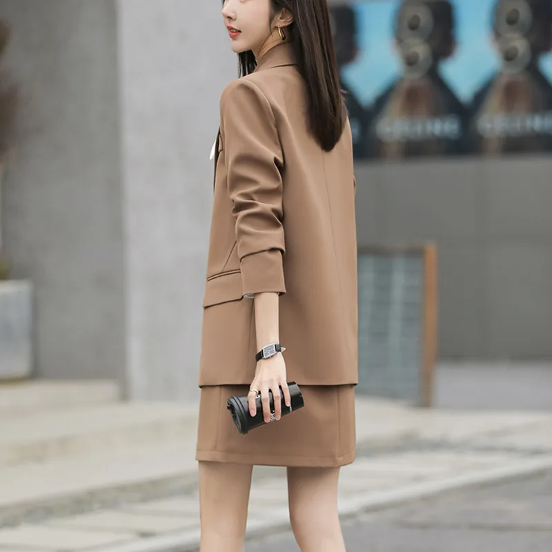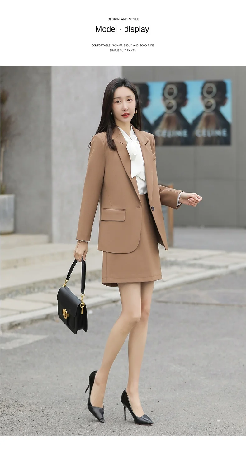 Женский офисный однотонный костюм из 2 предметов, Блейзер, юбка, куртка на одной пуговице, юбка миди, верхняя одежда на весну и осень