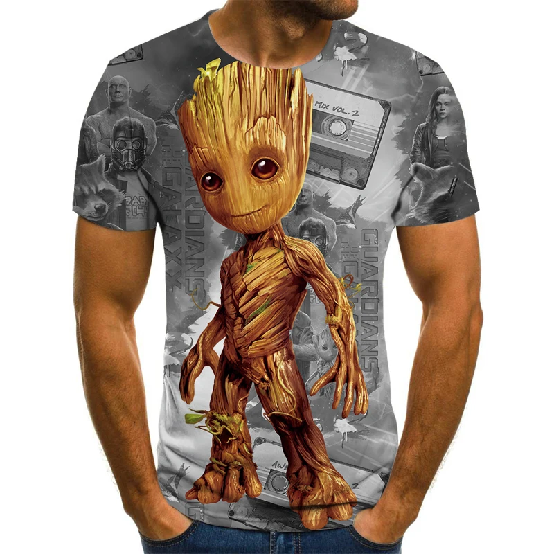 Футболка мужская с рисунком Грут забава, модная уличная одежда в стиле Харадзюку, Повседневная мультяшный аниме в стиле хип-хоп, лето 2021