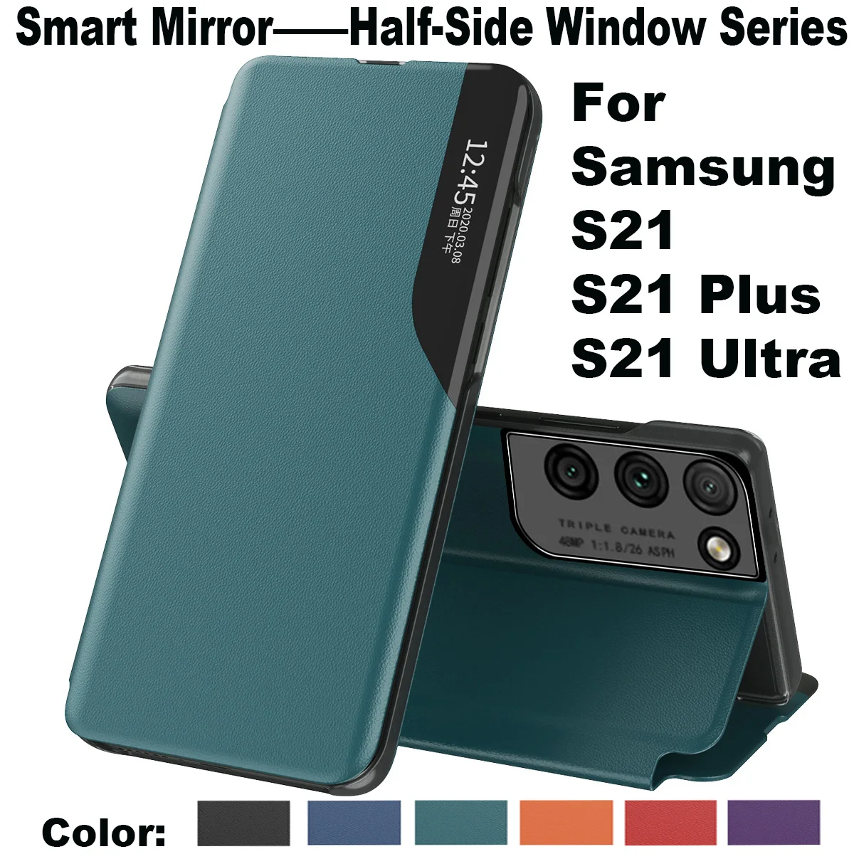 Умный чехол S21S21PlusS21Ultra для Samsung S21 Plus, зеркальная подставка, умный флип-чехол из искусственной кожи для Galaxy S21 Ultra, чехол